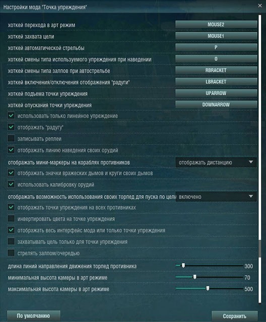 Удобен на дальних дистанциях. Мод для более удобного захвата целей в радиусе поражения ваших орудий и для перемещения по полю боя. В артрежиме можно видеть пройденную траекторию корабля противника, а также направление движение корабля противника. В данном режиме трудно определить факт обстрела вашего корабля, а следовательно и маневрировать будет неудобно.